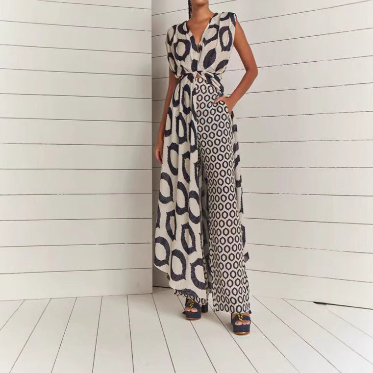 Temperament Twinset Backless Lace-up Straight-leg Pants Women's Suit