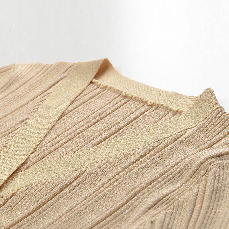 V-neck Single Breasted Bell Sleeve Slim Fit Dress