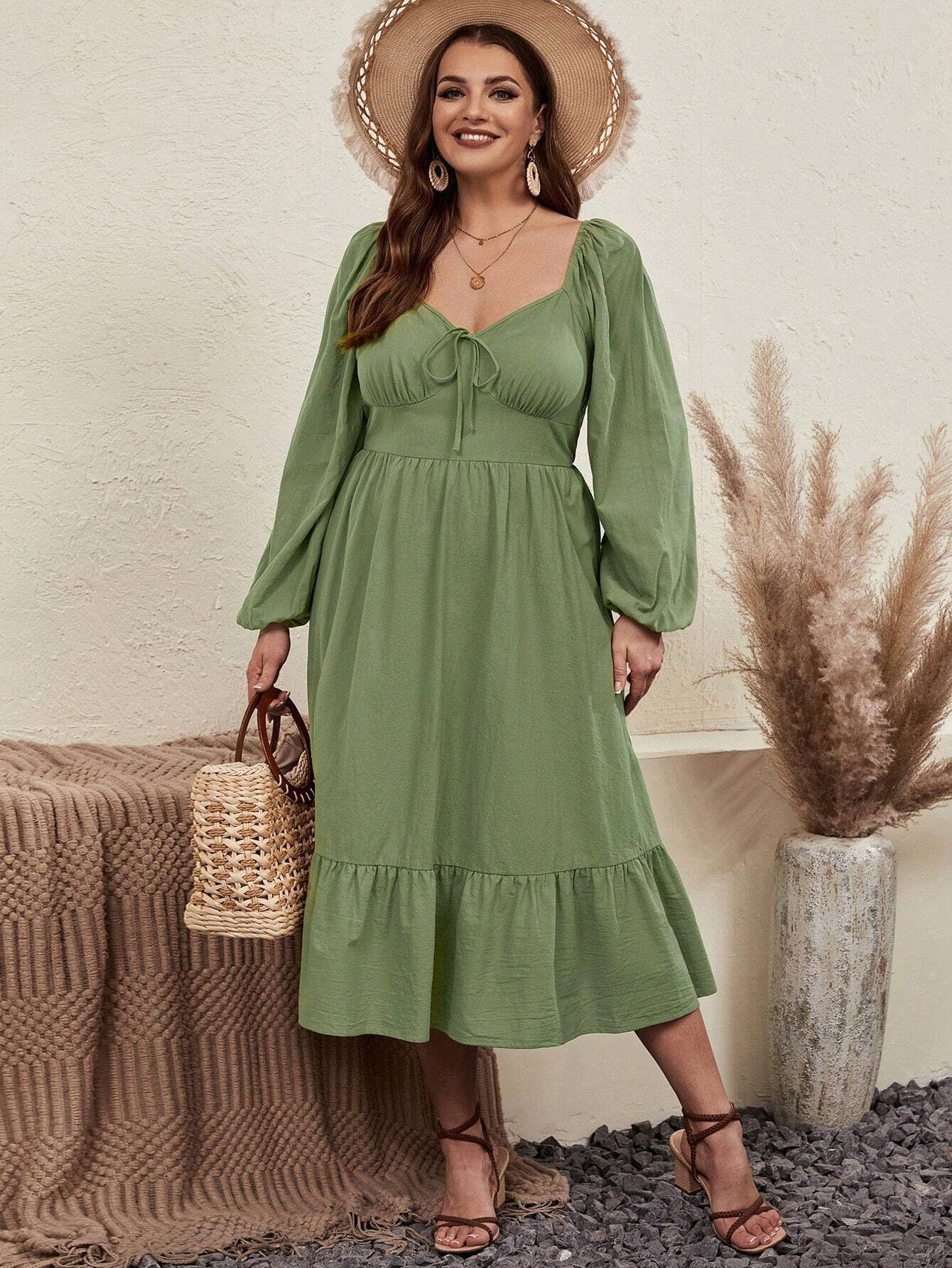 Waist-tight Large Skirt With Chicken Collar Puff Sleeve Pastoral Style Long Sleeve Dress