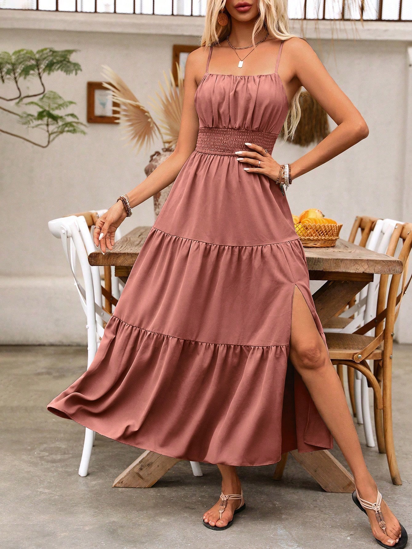 Women's Holiday Pleated Cami Dress Maxi Vacation Beach Outfit