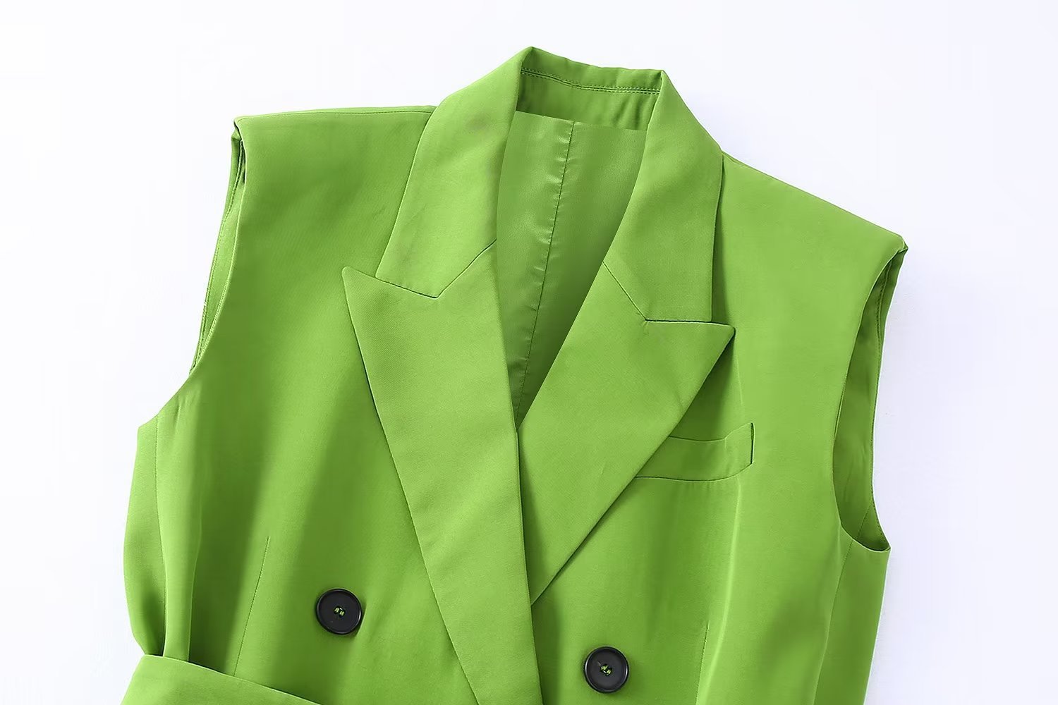 Women's Lapel Waistband Double Breasted Vest Casual Pants