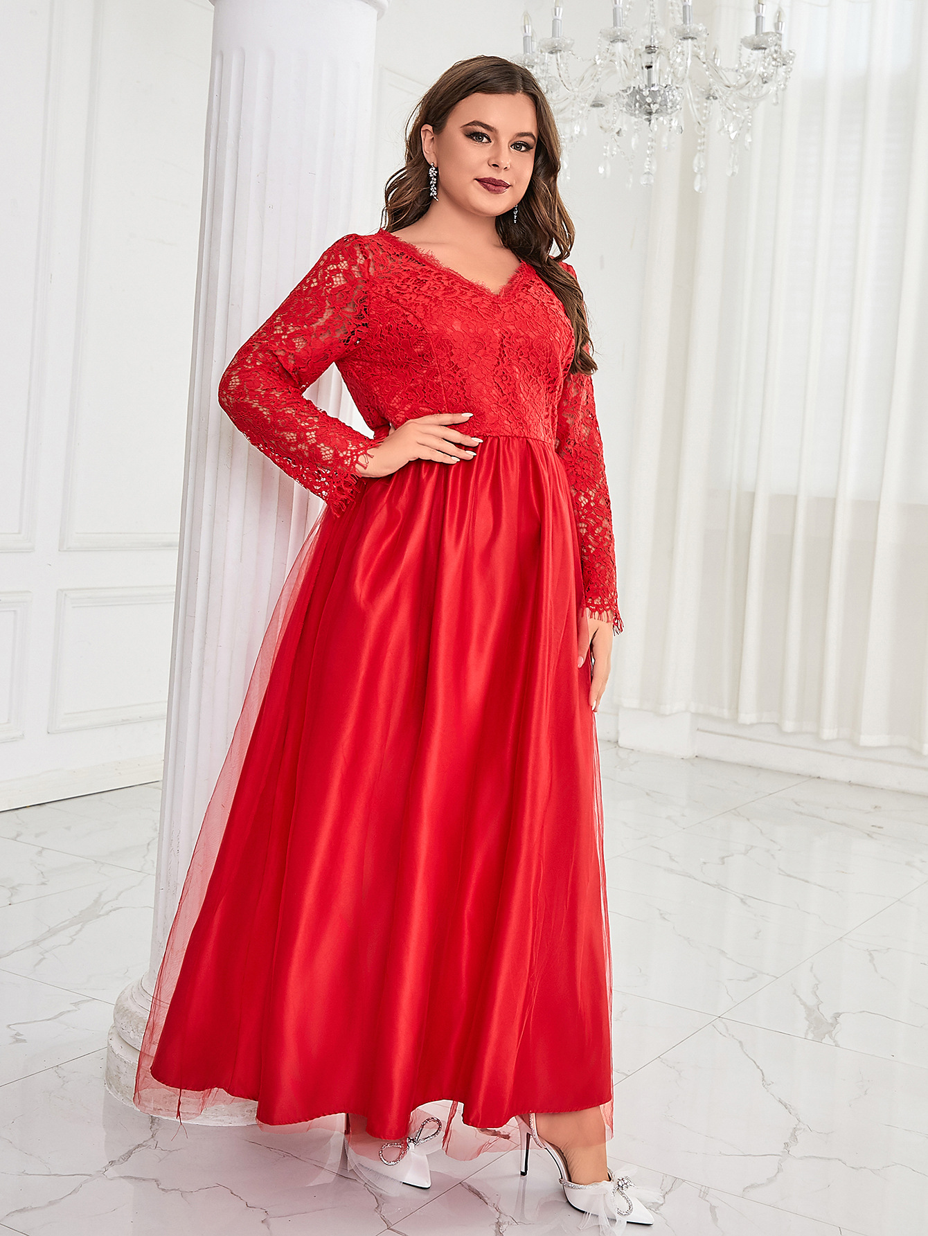 Women's Mesh Lace Long Sleeve Wedding A- Line Skirt