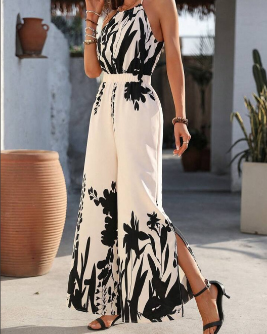 Women's Spaghetti-strap Floral Print Wide Leg Jumpsuit