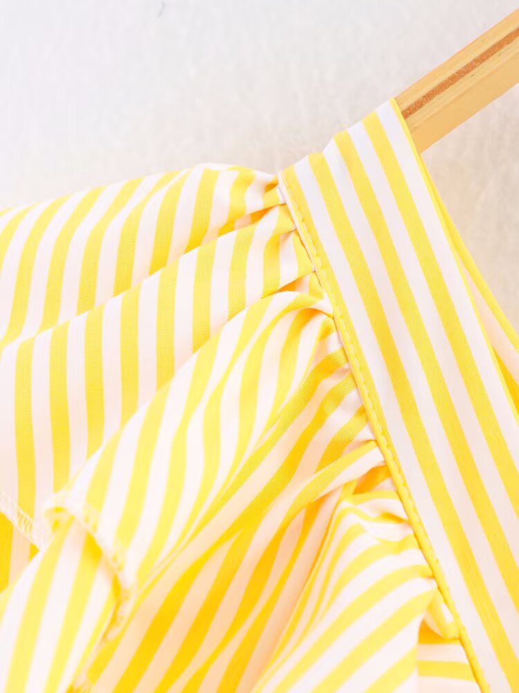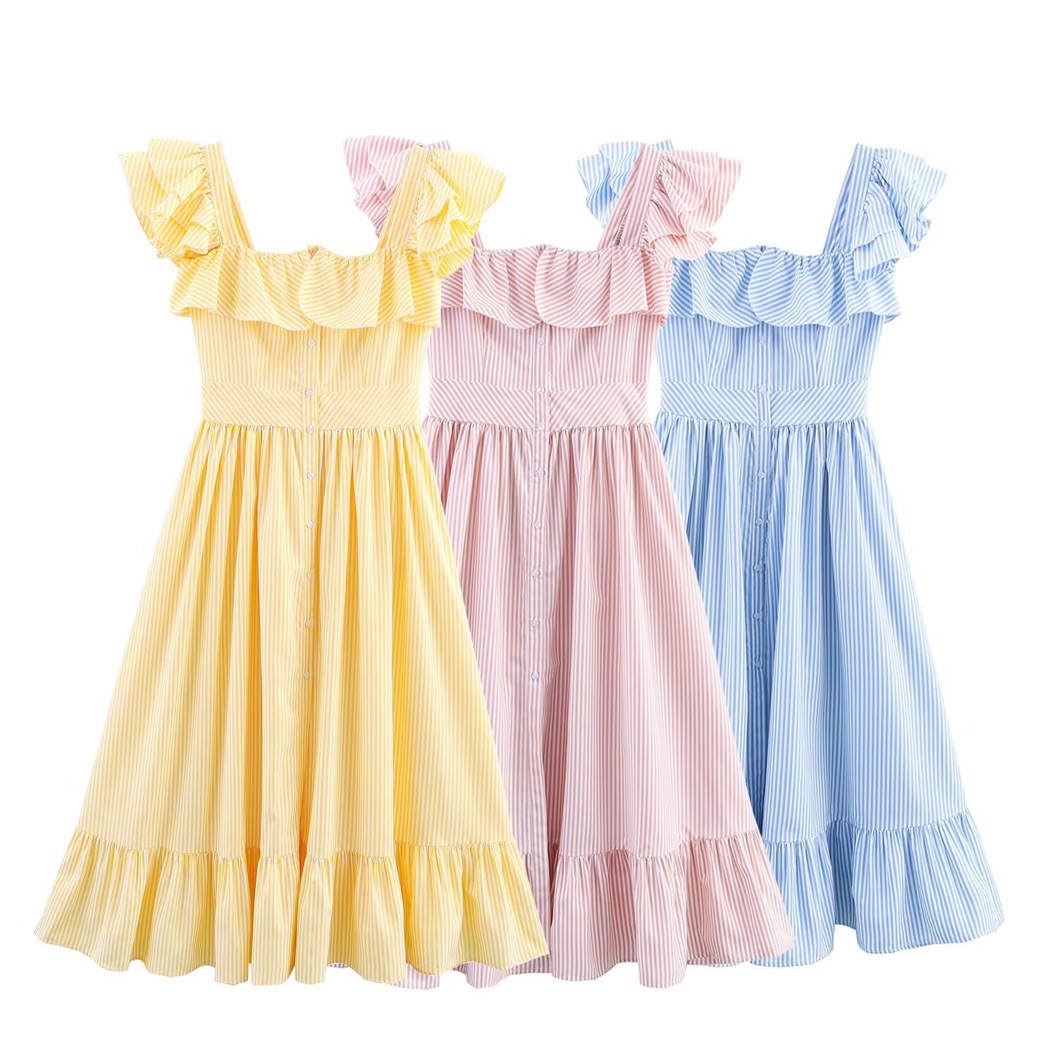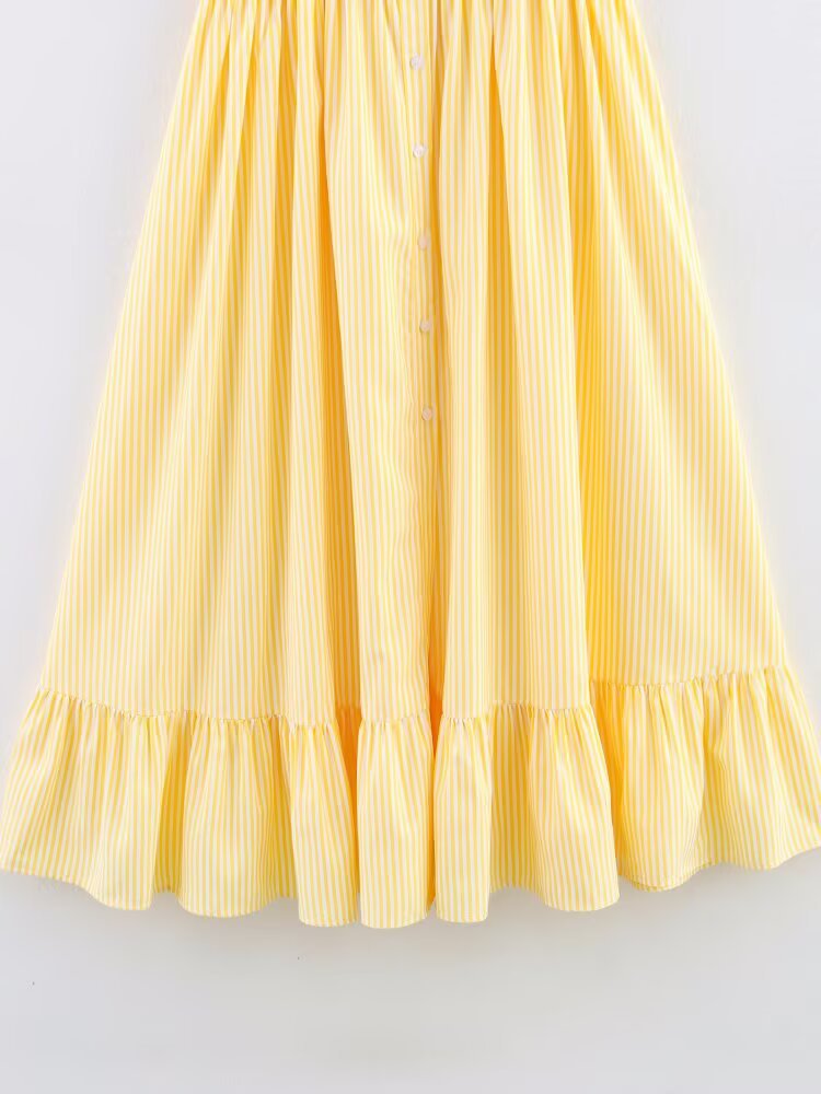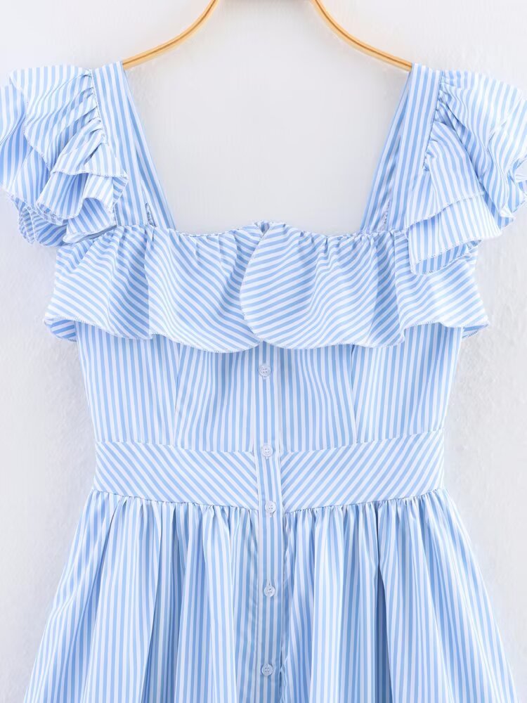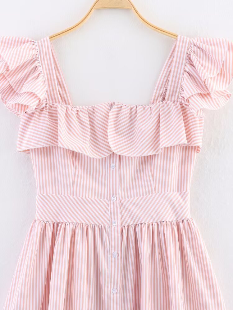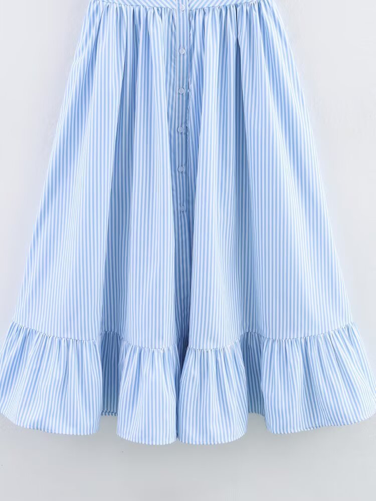 Women's Three-color Single-breasted Striped Ruffled Waist Dress