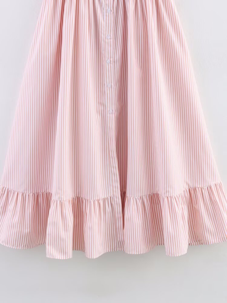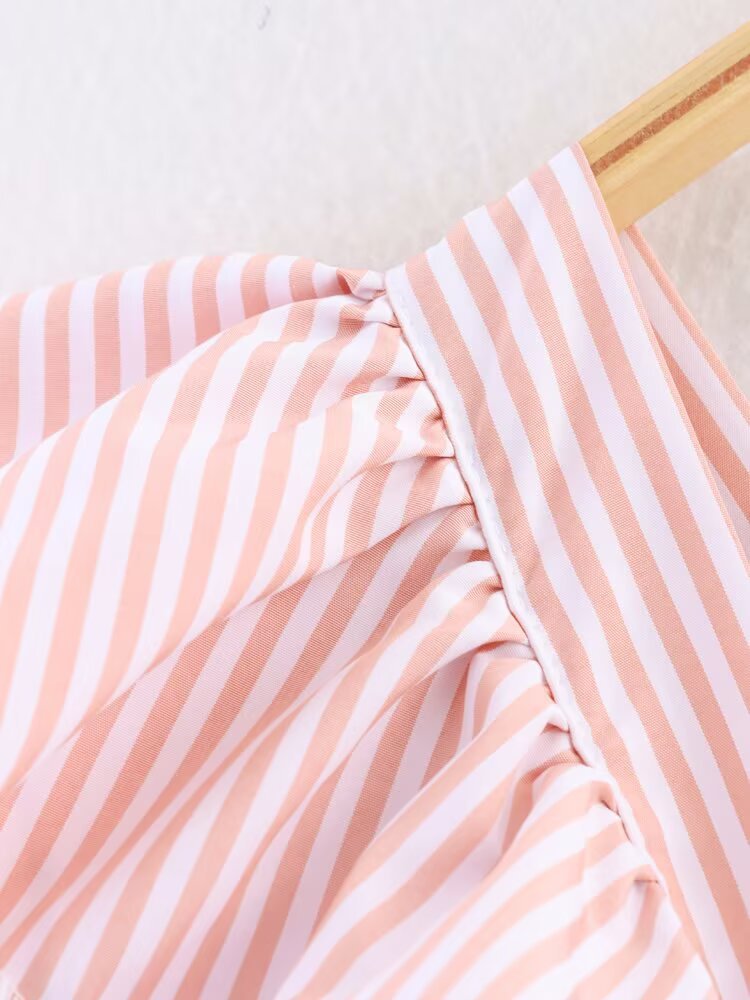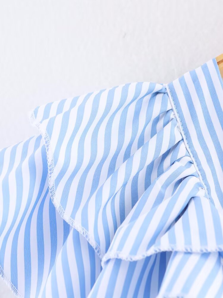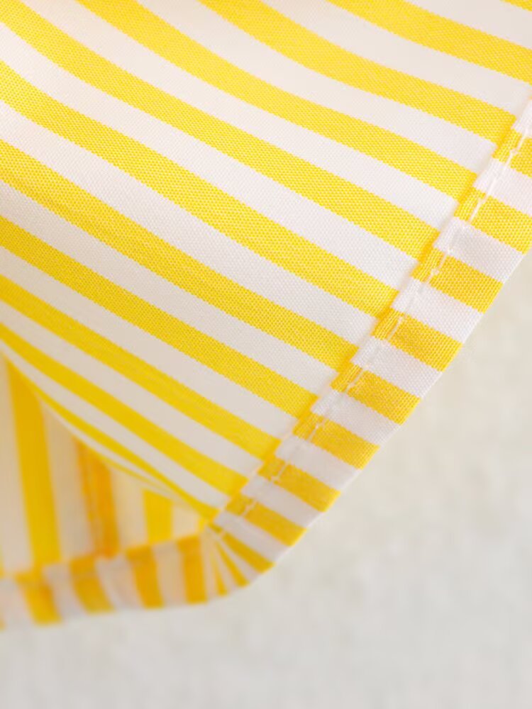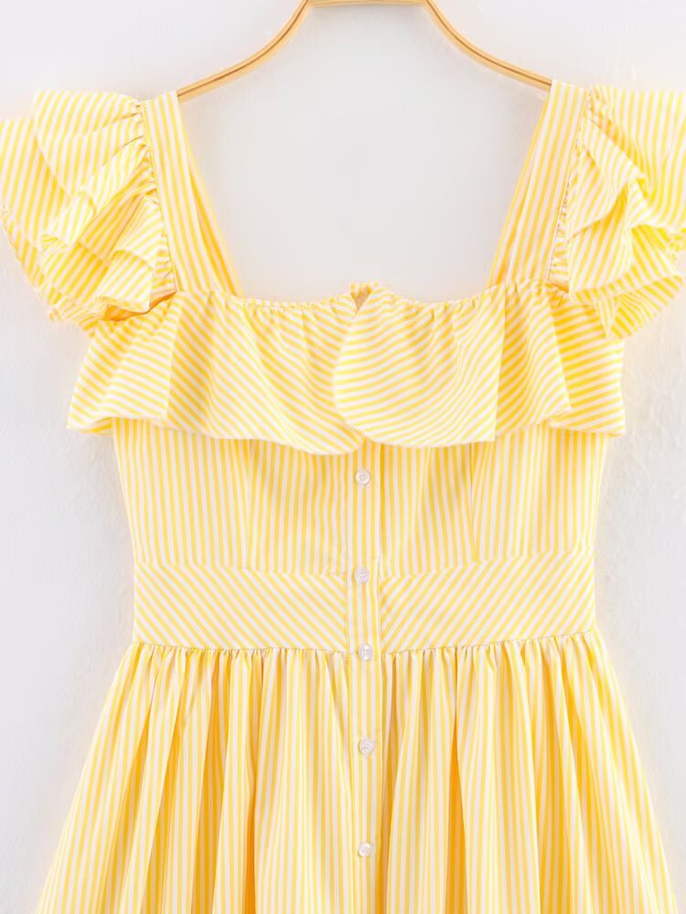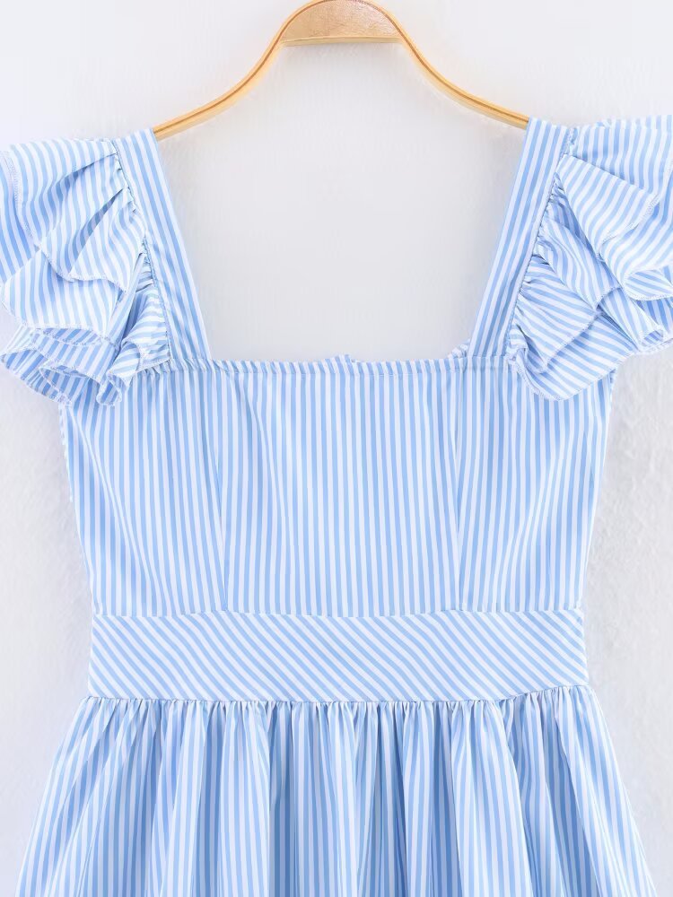 Women's Three-color Single-breasted Striped Ruffled Waist Dress