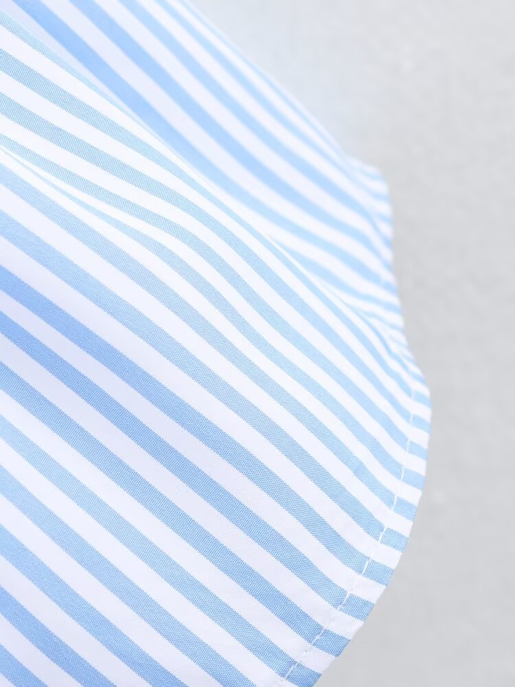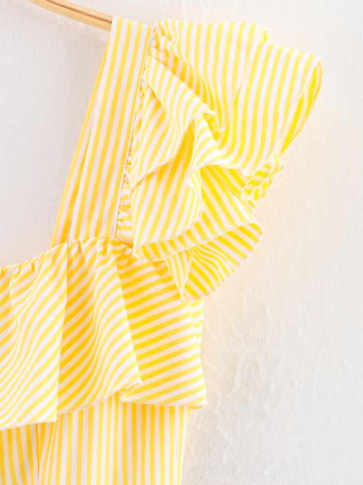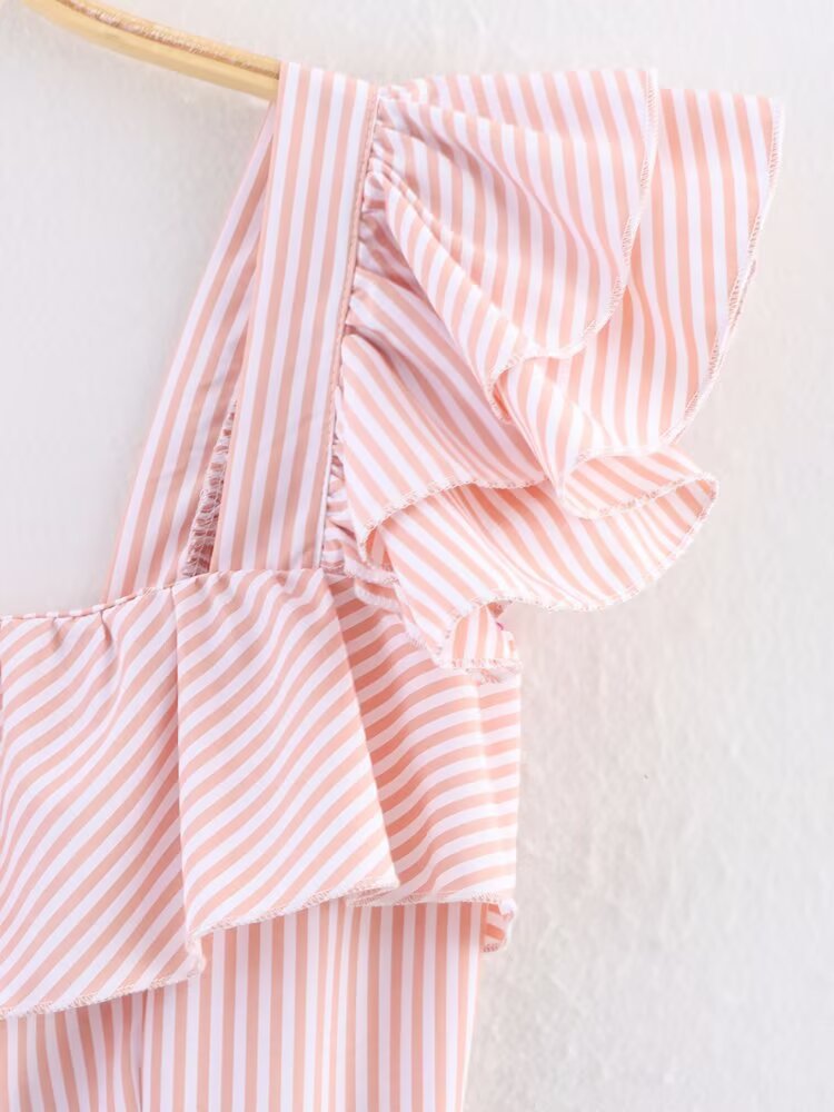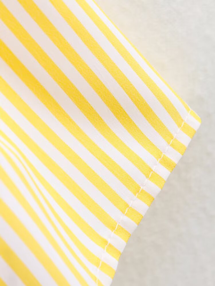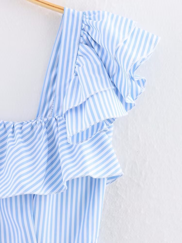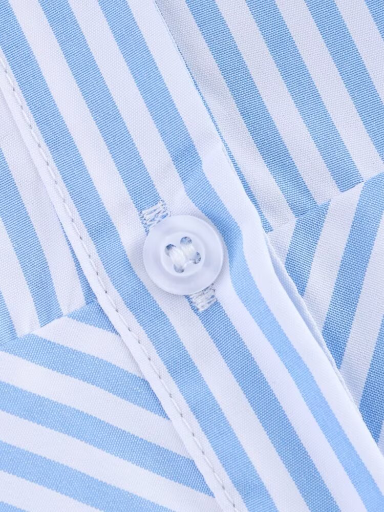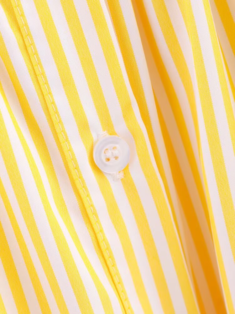 Women's Three-color Single-breasted Striped Ruffled Waist Dress