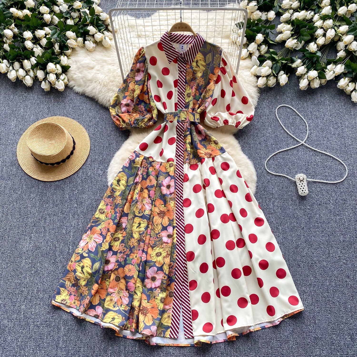 Women's Vintage Court Printed Lantern Sleeve Dress